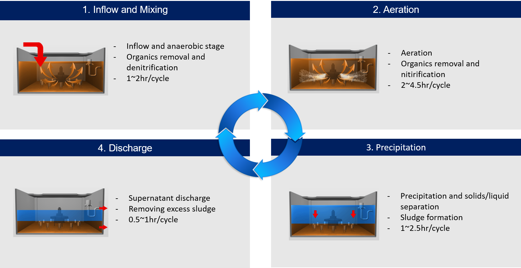 Advanced sewage treatment technology that performs inflow, reaction, precipitation and discharge in a single reactor